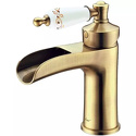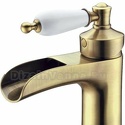 Назначение: для умывальника • Конструкция: однорычажный • Монтаж: горизонтальный • Материал: покрытие - бронза • Монтажные отверстия: 1 отверстие • Форма излива: каскадная • Душевая лейка в комплекте: нет • Донный клапан в комплекте: есть