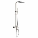 Общие характеристики Тип душевая стойка Материал стойки нержавеющая сталь Покрытие нержавеющая сталь Особенности Количество режимов верхнего душа 1 Тропический дождь есть Форма верхнего душа квадратная Количество режимов лейки 1 Монтаж Способ монтажа настенный Комплектация Смеситель однозахватный Излив для наполнения ванны есть Верхний душ есть Ручной душ (лейка + шланг) есть Держатель для душевой лейки штанга Габариты Высота стойки для душа 1250 мм Верхний душ (ДхШ)