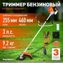 Производитель: Patriot Модель: PT 5555ES Country - Переносной триммер - бензиновый 2х тактный двигатель - 52 см³ - 3 л.с. - тормоз двигателя Описание
