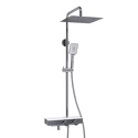 Характеристики: Душевой комплект с насадкой «Ливневый дождь» Входит в комплект: Душевая насадка 300х300 мм, 196 форсунок, нержавеющая сталь Стойка для душа, Ø 22 мм регулируемая по высоте Лейка 3-функциональная с системой защиты от известковых отложений Шланг ПВХ 1500 мм, подключение к лейке Термостатический смеситель Термостатический картридж Vernet (Франция) Встроенный пластиковый аэратор Neoperl HONEYCOMB (Германия) с регулируемым углом наклона струи Обратный клапан Neoperl (Германия)
