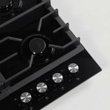 Поверхность: варочная панель • Тип поверхности: газовая • Рабочая поверхность: закаленное стекло • Число конфорок: 4 • Установка: независимая • Газовые конфорки: всего - 4 (1 конфорка "Тройная корона") • Газ-контроль конфорок: есть • Тип управления: механическое • Переключатели: поворотные • Электроподжиг: есть, автоматический • Размеры: 590x520x50 мм • Размер ниши для встраивания: 560x490 мм