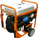 Топливо: бензин • На выходе генератора: 12 кВт, 380 В, 3 розетки • Работа: до 7.1 ч, бак 50 л • Габариты: 770x600x790 мм, 145 кг