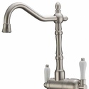 Назначение: кухонный • Конструкция: однорычажный • Монтаж: горизонтальный • Материал: покрытие - никель • Монтажные отверстия: 1 отверстие • Форма излива: традиционная • Душевая лейка в комплекте: нет • Донный клапан в комплекте: есть